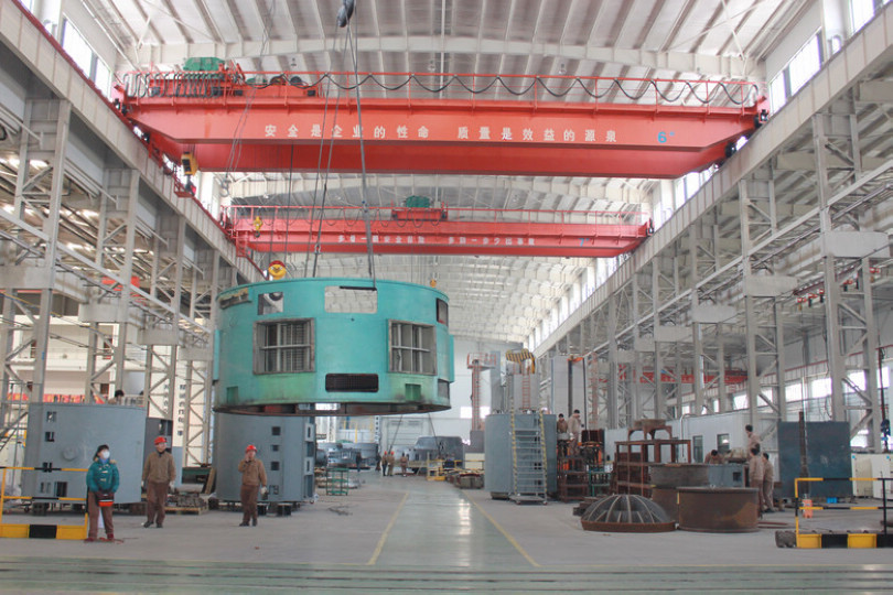 金裝車間具有先進(jìn)強(qiáng)大的機(jī)加工能力和大型機(jī)組的總裝試驗(yàn)?zāi)芰?/span>,車間各類規(guī)格設(shè)備齊全,配有包括12.5米數(shù)控鏜車床、Φ200數(shù)控鏜銑床、大型數(shù)控銑槽機(jī)、12米數(shù)控臥車等關(guān)鍵設(shè)備在內(nèi)的各種設(shè)備40余臺(tái),并配有9米×6米自動(dòng)化燃?xì)鉄崽幚頎t。車間配有1500KW拖動(dòng)試驗(yàn)平臺(tái)、全封閉自動(dòng)控制超速堡、封閉式無塵下線間、大型總裝平臺(tái)、疊壓平臺(tái)、水壓試驗(yàn)平臺(tái)、VPI真空浸漆房、燃?xì)鉁乜貒姾娣?、封閉式除塵轉(zhuǎn)輪制作間、32T動(dòng)平衡機(jī)等大型設(shè)備設(shè)施,車間最大跨度33米,最大起吊重量160T,最大起吊高度22米,可滿足年產(chǎn)400臺(tái)套各類火力發(fā)電機(jī)、水力發(fā)電機(jī)組的機(jī)加工總裝任務(wù)。