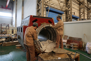 寧波明州熱電定子返修,需更換定子線圈和受損的定子鐵心,且客戶急著使用,總裝成品部合理調(diào)配人員,壓定、嵌線、油漆等工序相互配合,通過(guò)人員輪換進(jìn)行兩班倒進(jìn)行趕制,在客戶要求的時(shí)間內(nèi)完成了機(jī)組返修。